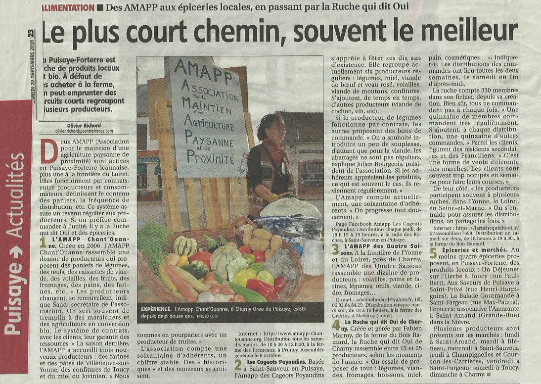 Suite à notre rencontre avec un journaliste de l’Yonne Républicaine, samedi dernier lors de la fête des possibles, nous avons un petit encart dans un article de ce samedi 29 septembre 2018 sur la consommation locale.