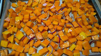 Ajouter les cubes de butternut, fermer le saladier et bien agiter pour assaisonner chaque cube.