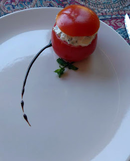 Mélanger fromage blanc, menthe, concombre, une cuillère à soupe d’huile d’olive, saler, poivrer et farcir les tomates.