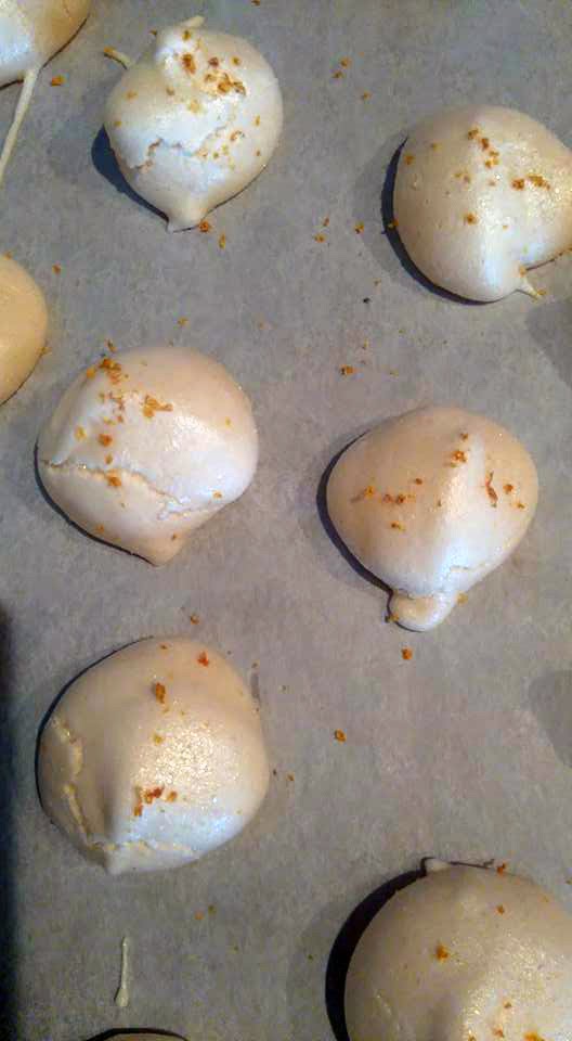 Déposer de petites boules sur une plaque à four (On peut utiliser un sac pour congeler à défaut de poche à douille).