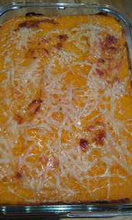 Ajouter quelques noisettes de beurre et du parmesan râpé. Enfourner à 200 durant 20 min.