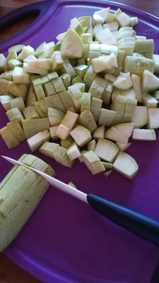 Pendant que ça rissole doucement, tailler les courgettes puis les ajouter.