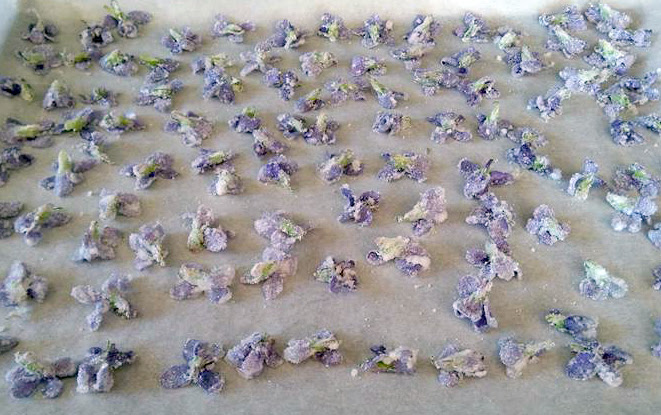 Après environ 30 min de séchage au four (surveiller, les violettes doivent être bien sèches sans colorer).