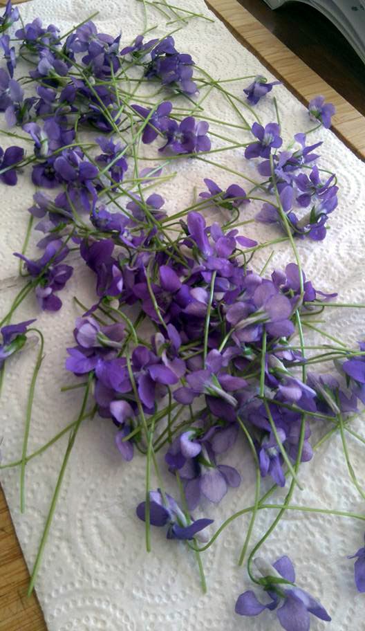 – des violettes (attention les ramasser dans un lieu non polué, éviter les bordures de champs, les bois, bords de route… préférer des violettes cultivées).